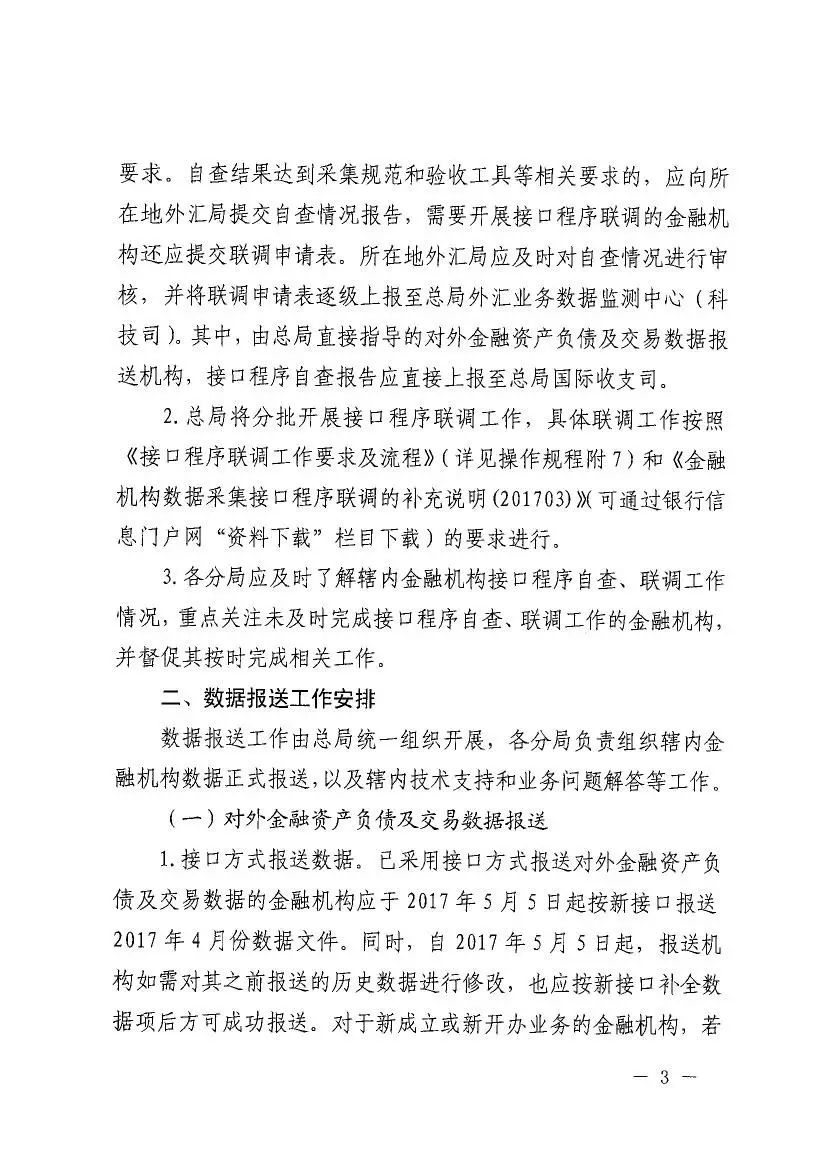 关于对外金融资产负债及交易数据、机构外币现钞存取数据、外汇账户和账户内结售汇数据接口程序自查、联调和数据报送有关工作的通知