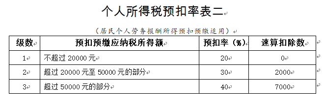 劳务报酬的预扣预缴适用的是单独的一个税率表。