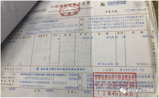 有朋友发一张图片给我,是江西省某县税局大厅代开的“零星工程”发票,没有代扣代缴个人所得税。