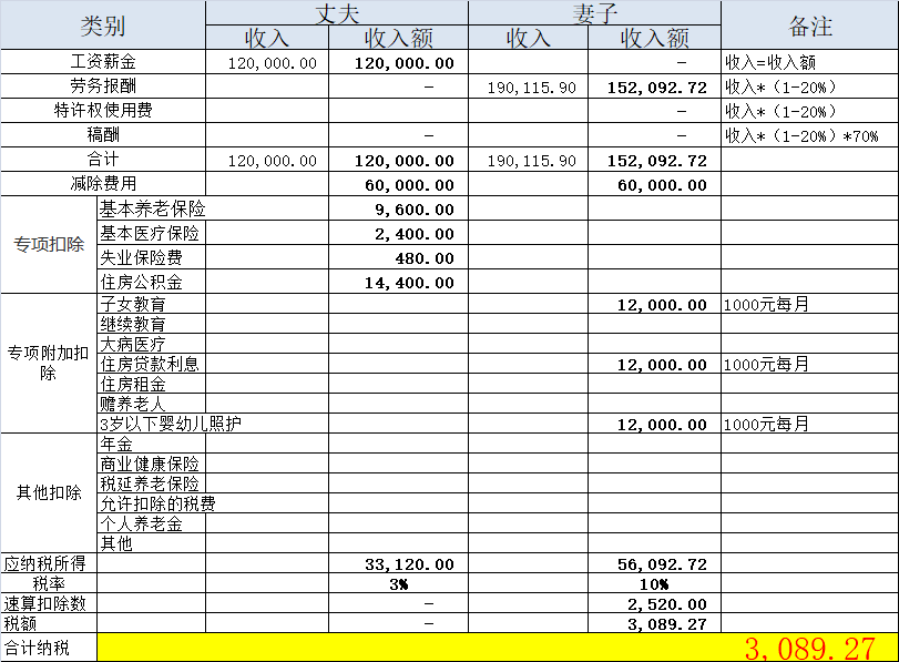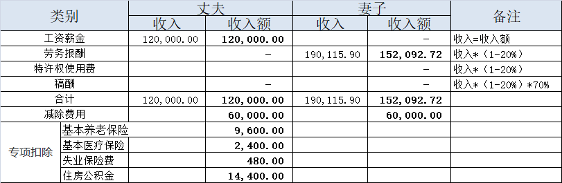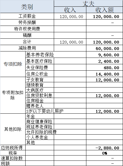 老张年收入很好预计,公司都是定了的收入,也就是12万,妻子做短视频,收入不稳定,而且劳务报酬平时预扣时候无法扣除专项附加。