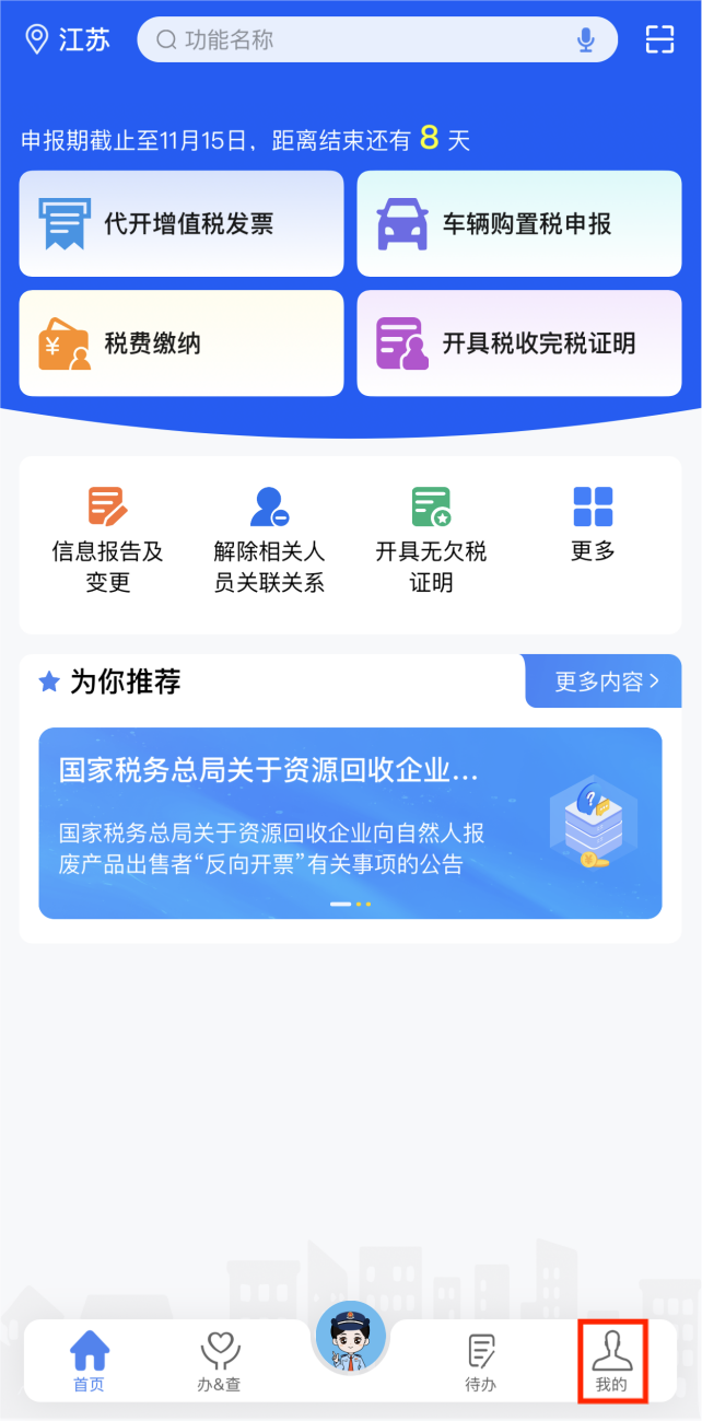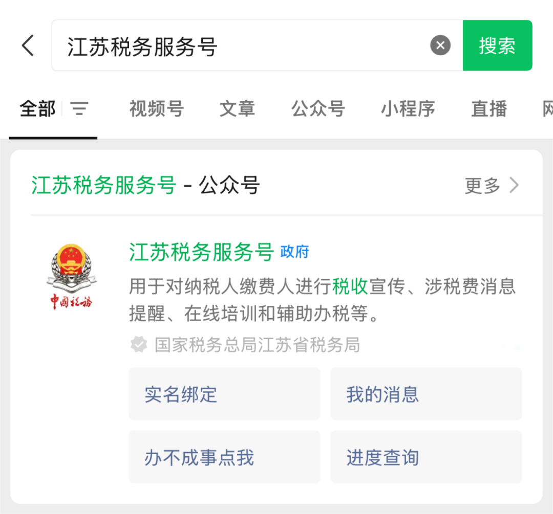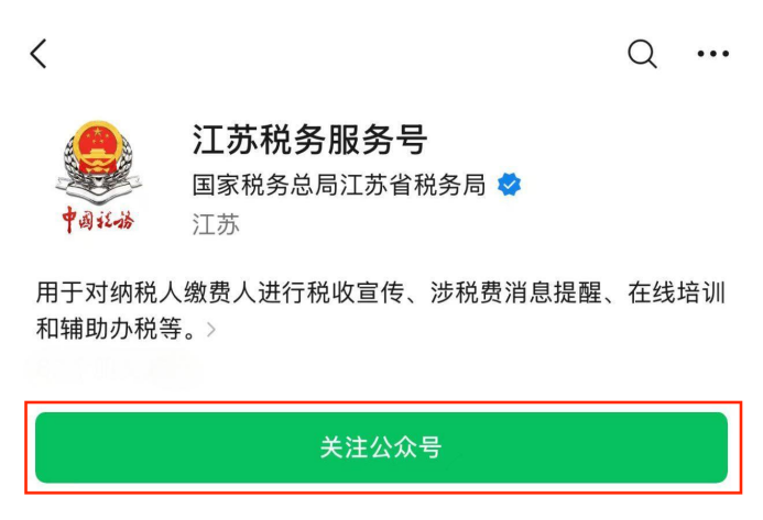 (1)您可以微信搜索“江苏税务服务号”,点击【关注公众号】。