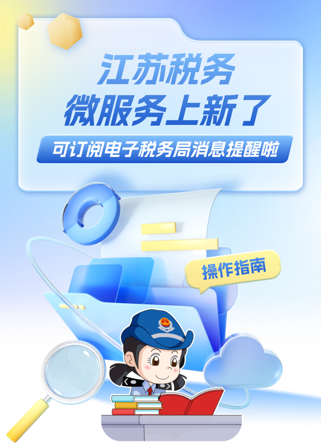 为帮助纳税人缴费人及时查收电子税务局发送的涉税事项提醒,江苏税务微信服务号新增电子税务局消息提醒订阅功能。需要您实名手机号码关联绑定江苏税务服务号并且完成业务提醒订阅后,即可查收电子税务局消息提醒。让我们一起来看看具体的操作吧!