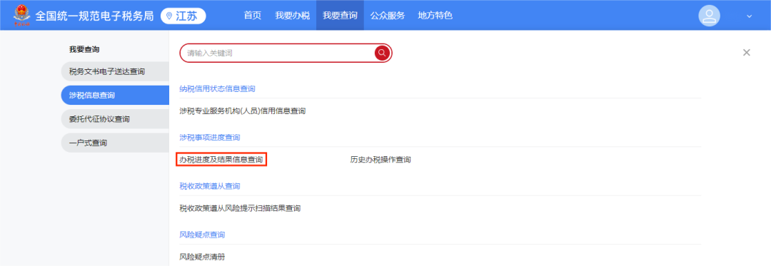 (2)例如您通过电子税务局办理了“纳税信用复评”事项,可以登录电子税务局(网页端)或者电子税务局APP的【办税进度及结果信息查询】模块查看该涉税事项详情。