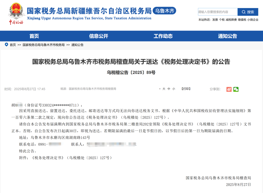 乌税稽处〔2025〕127号
