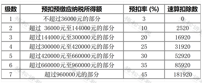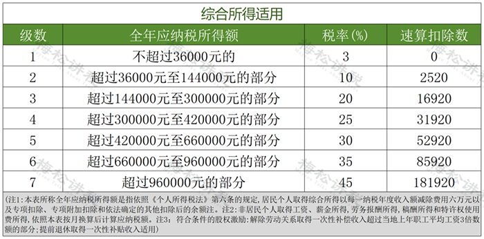 (注:适用税率,以全年一次性奖金收入除以12个月得到的数额对照月度税率表确定)
