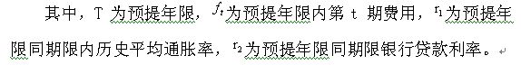 五、重组企业按照本通知第三、四条预提的有关费用,应当分别计算离退休人员和内退人员的预提年限,并以重组基准日相关费用为基数,以同期限历史平均通胀率计算未来各期企业应支付的费用后,再按照同期限银行贷款利率进行贴现计算。预提费用计算公式如下: