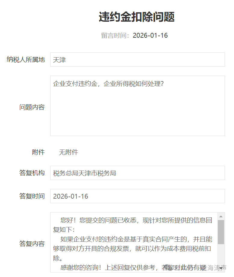 如果企业支付的违约金是基于真实合同产生的,并且能够取得对方开具的合规发票,就可以作为成本费用税前扣除。