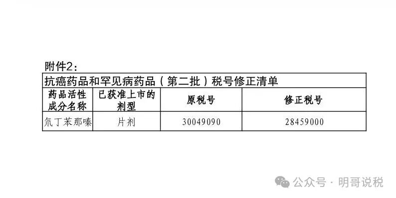 | 序号 | 药品活性成分名称 | 已获准上市的剂型 | 原税号 | 修正税号 | |