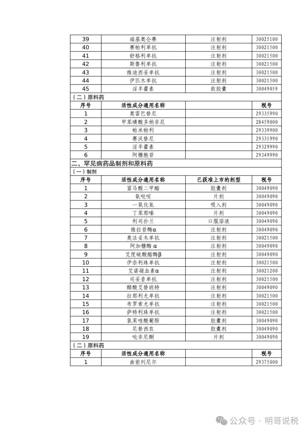 一、自2022年12月1日起,本公告附件1中的抗癌药品和罕见病药品,按照《财政部 海关总署 税务总局 国家药品监督管理局关于抗癌药品增值税政策的通知》(财税〔2018〕47号)、《财政部 海关总署 税务总局 药监局关于罕见病药品增值税政策的通知》(财税〔2019〕24号)规定执行相关增值税政策。