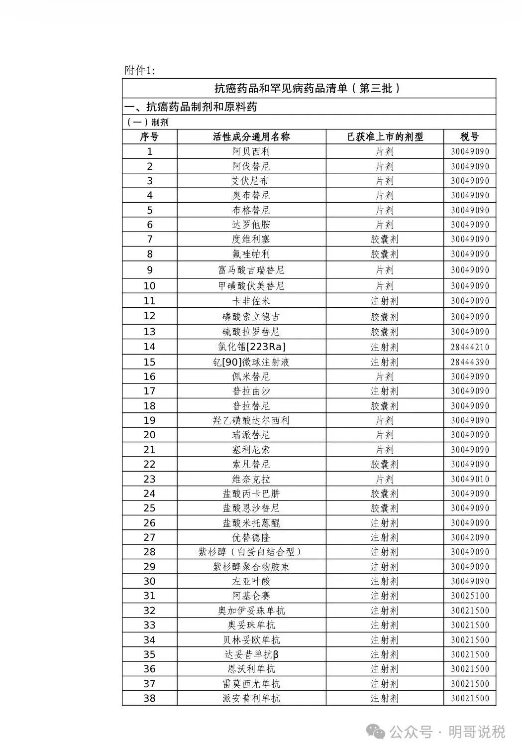 为鼓励制药产业发展,降低患者用药成本,现将第三批适用增值税政策的抗癌药品和罕见病药品清单等公告如下: