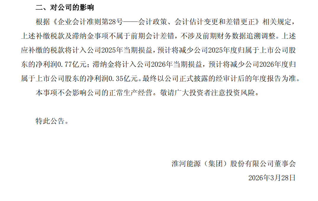 淮河能源:应补缴环境保护税及滞纳金约约1.74亿元