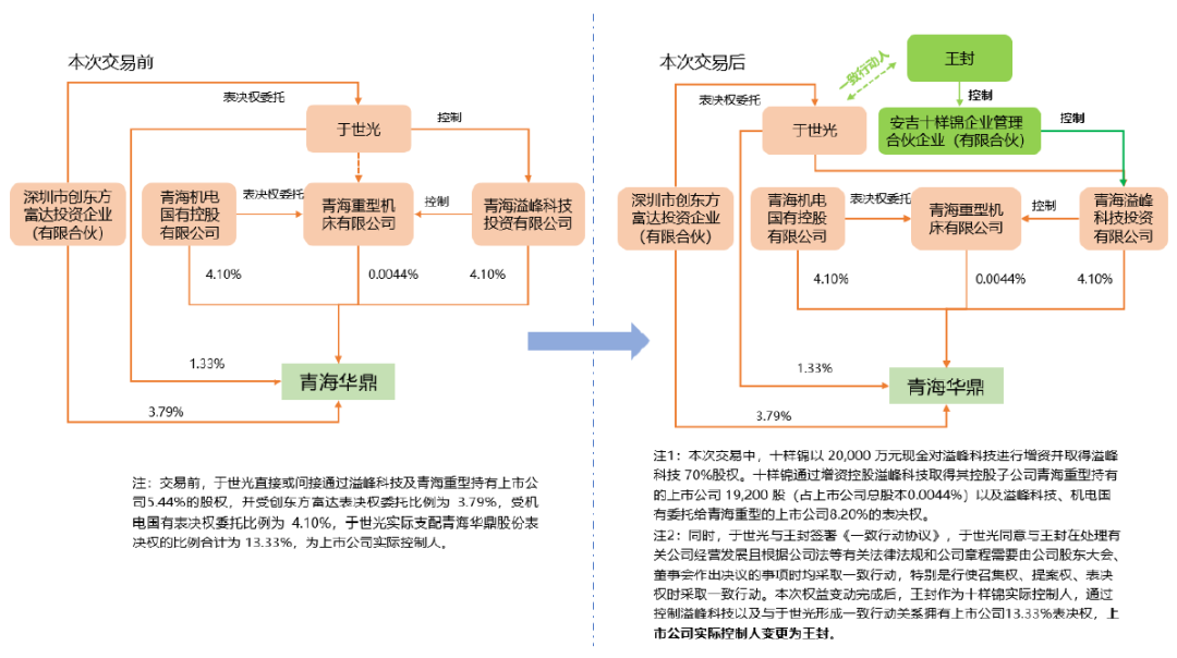 (1)青海华鼎(增资取得上市公司股东的控制权+一致行动协议)