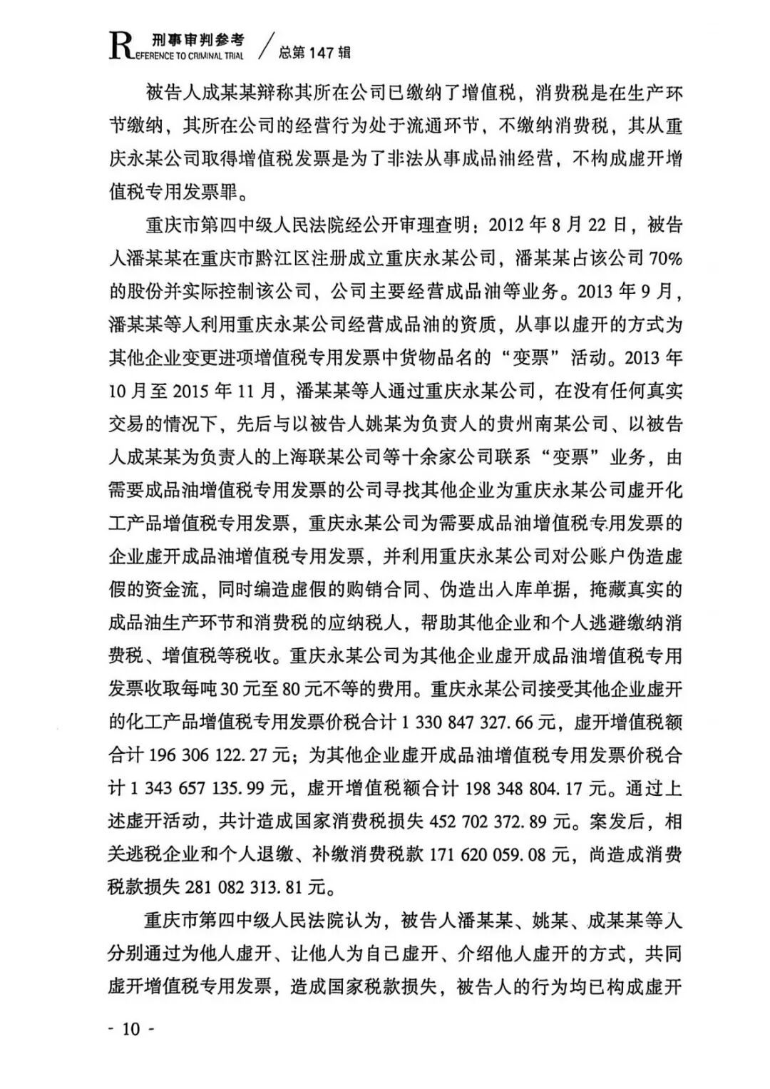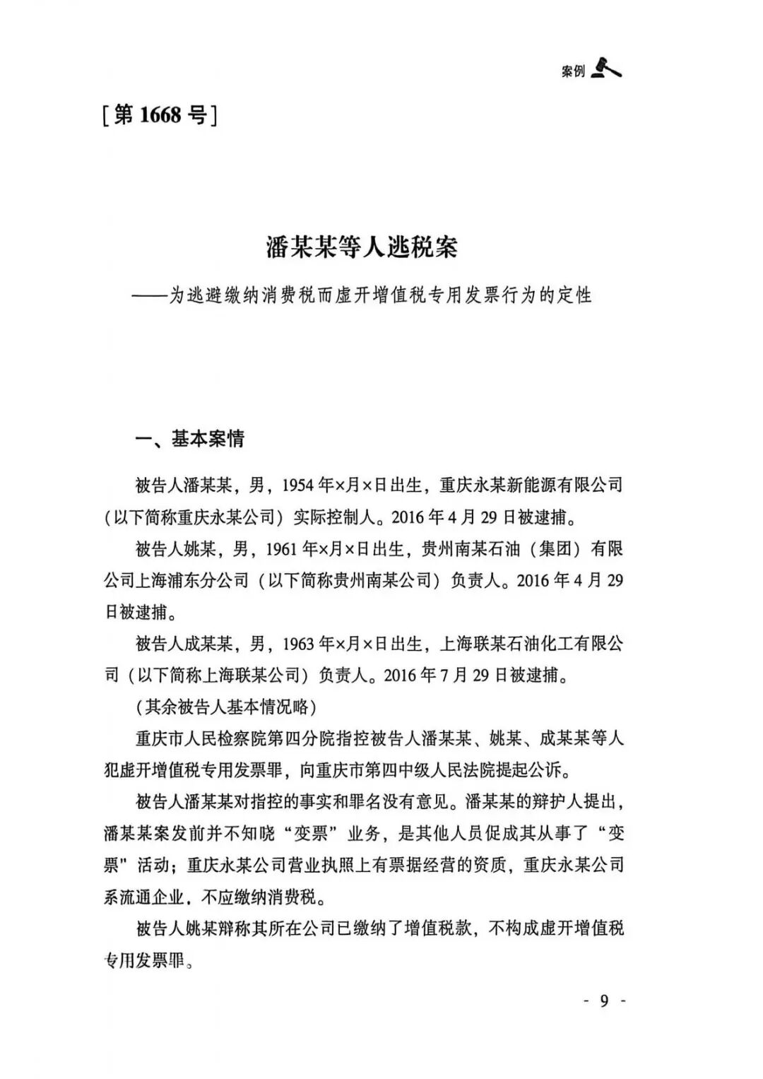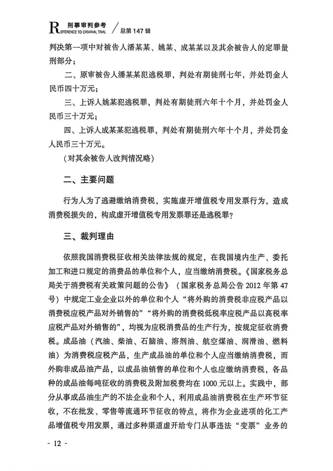 《刑事审判参考》:潘某某等人逃税案——为逃避缴纳消费税而虚开增值税专用发票行为的定性