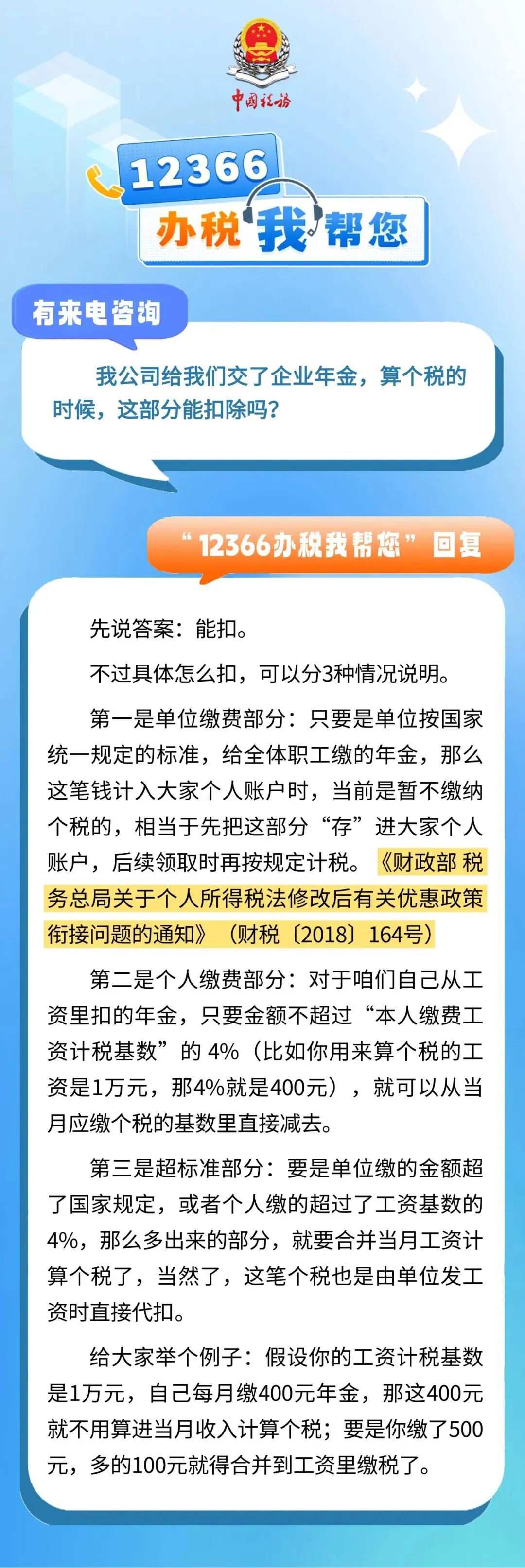 个人所得税丨我公司给我们交了企业年金,算个税的时候,这部分能扣除吗?