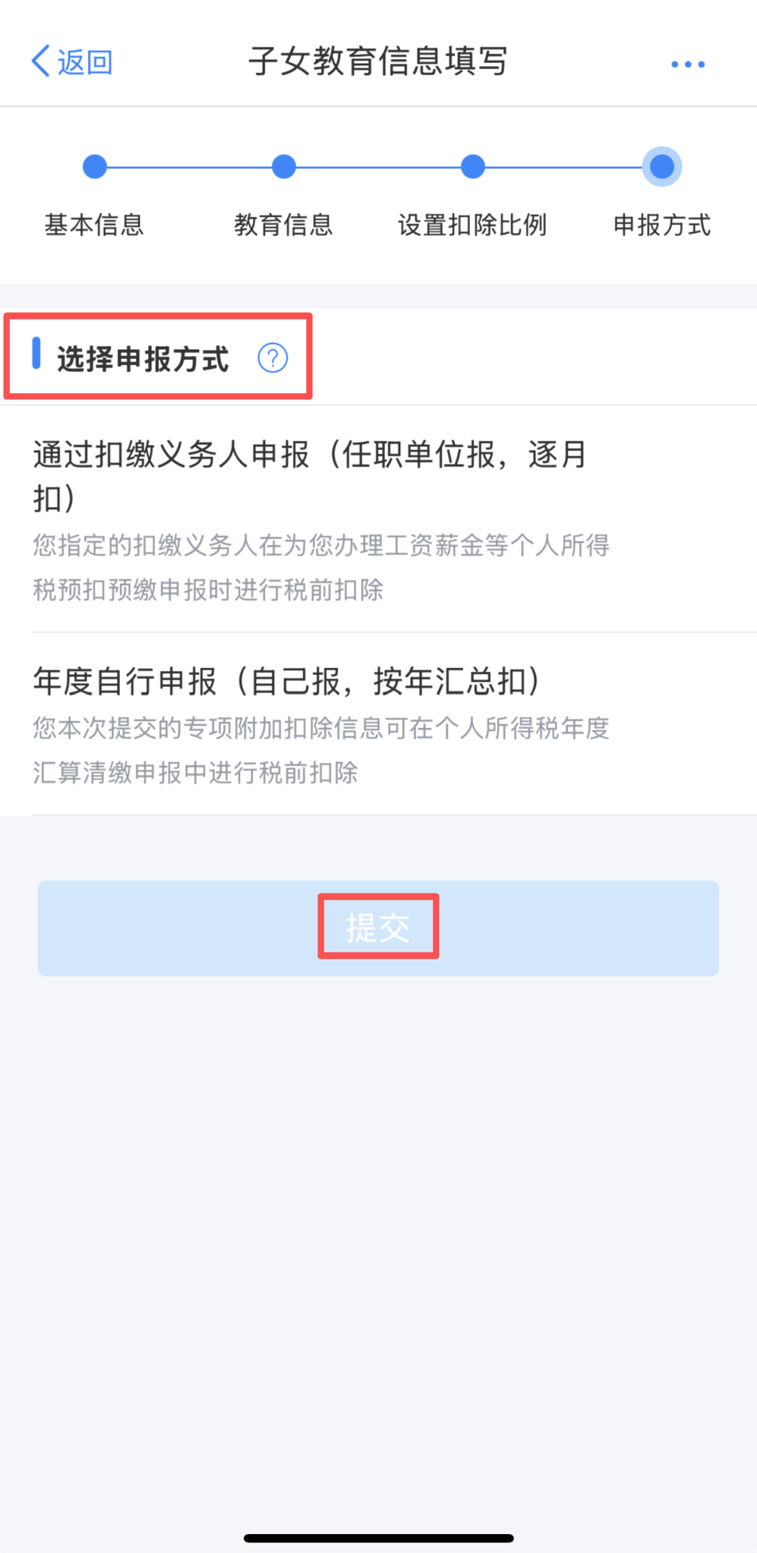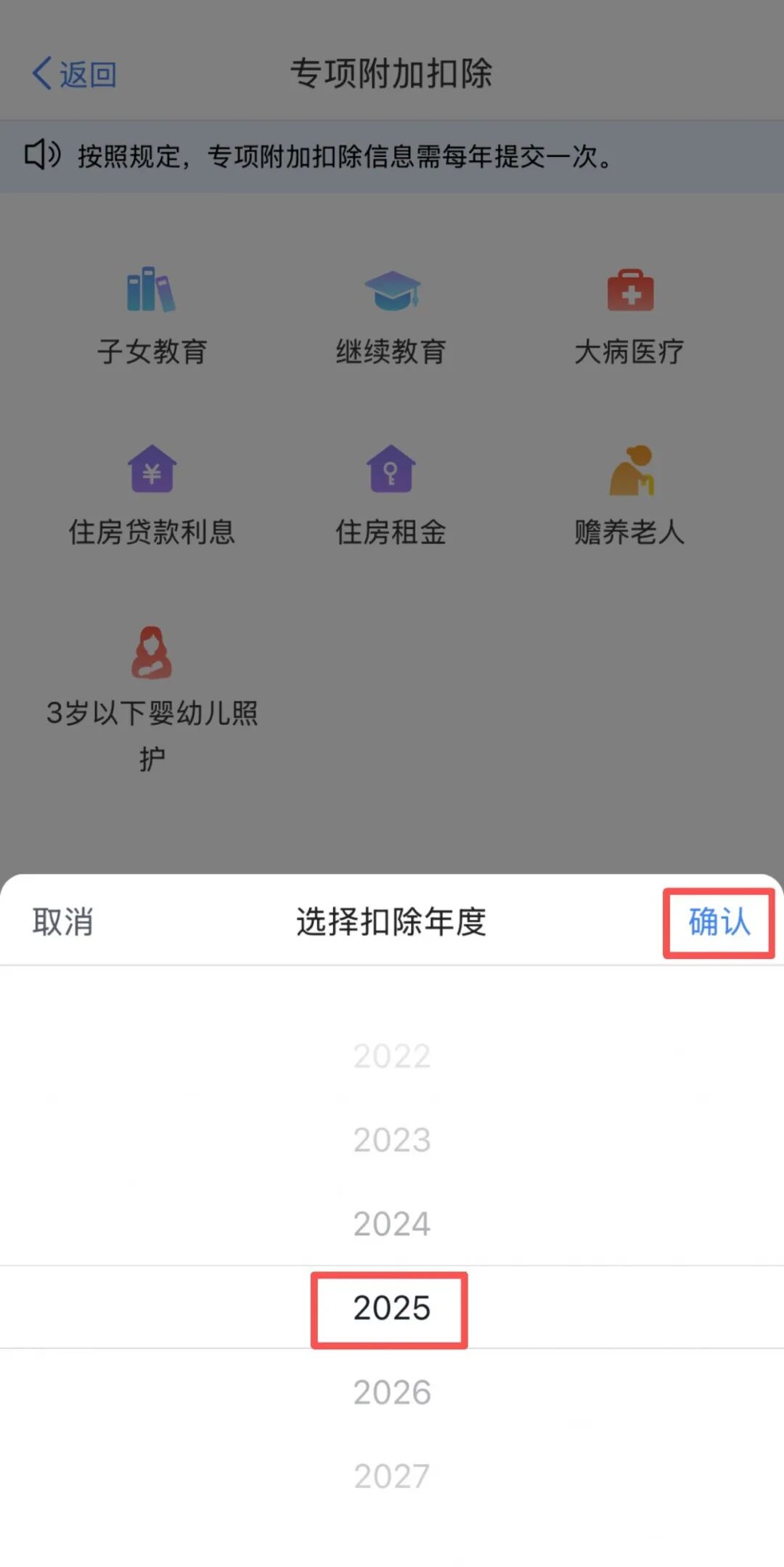 如您扣除年度选择2025年,因2025年全年的个税预扣预缴已完成,则无需选择【通过扣缴义务人申报(任职单位报,逐月扣)】的方式来扣除,如您扣除年度选择2026年则不受影响,两个申报方式均可选择。