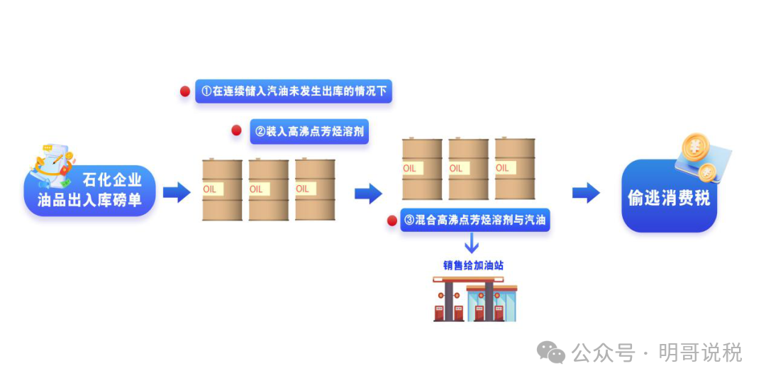 至此,宏坚石化的逃税手法“一览无余”:该企业作为经销企业,从上游采购敏感化工品,在无生产资质的情况下,直接将这些原料注入储罐进行物理混合,产出所谓的“汽油”进行销售,规避其作为油品调和者应承担的消费税纳税义务,达到偷逃税款的目的。