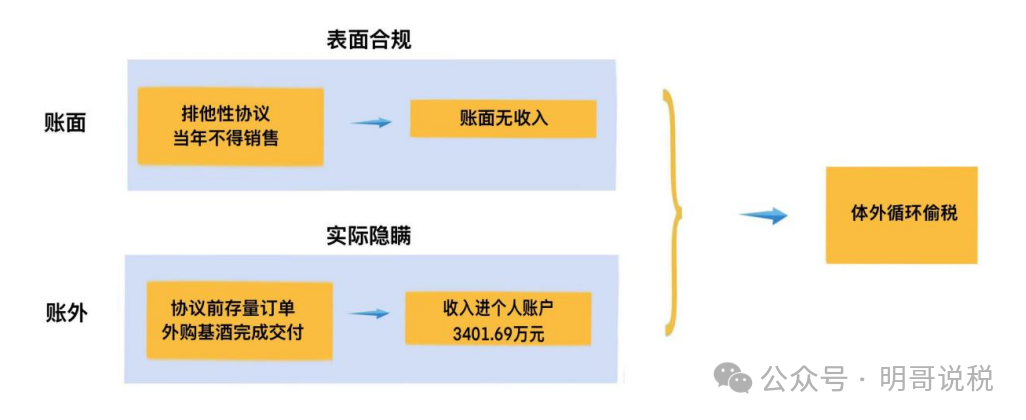 随着检查的深入,企业法定代表人承认,为了履行2021年前签订且已收取定金的存量合同,鹏程酒厂在签订排他性协议后,通过外购基酒和包装材料完成了订单交付,而这些交易产生的销售收入,均未经过企业对公账户。