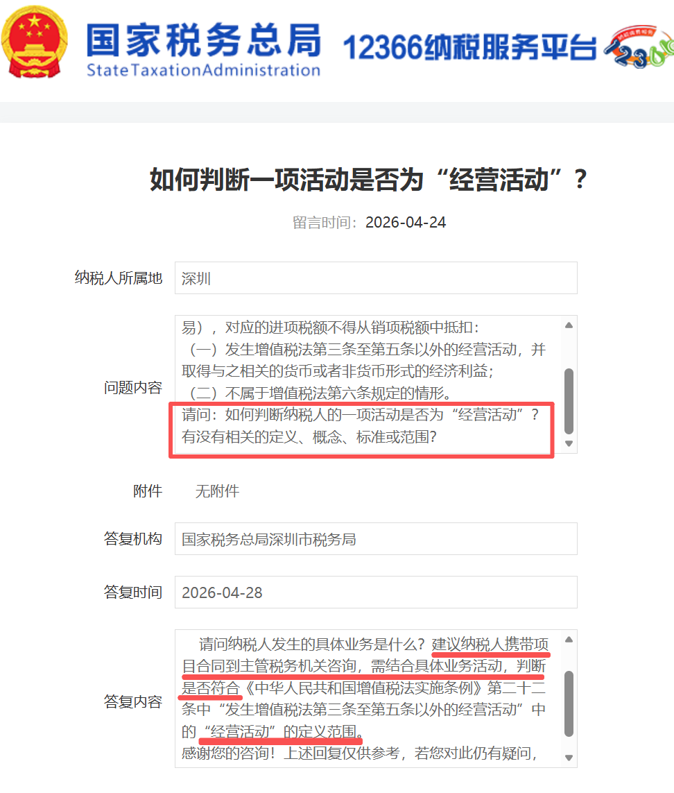 深圳市税务局,如果你们真有增值税法实施条例第二十二条中所谓“经营活动”的定义范围,告诉我又何妨呢?有这样的定义、范围或标准,告诉纳税人,让纳税人能够自行判断,不好吗?