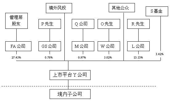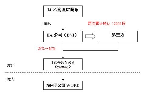 2009年至2010年,南京某境外上市公司大股东通过其BVI离岸公司FA减持其境外上市主体Y公司6500万股、5700万股,累计转让收入逾18亿港元。发生股权转让时公司境外架构图如下: