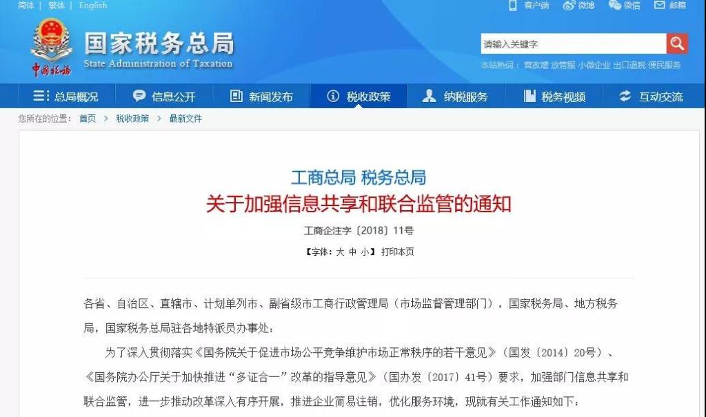 据工商总局网站消息,工商总局、税务总局近日发布《关于加强信息共享和联合监管的通知》。通知要求协同推进企业简易注销登记改革,建立协同监管和信息共享机制,这将使企业注销登记更简易。