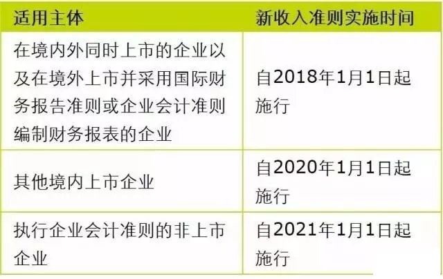 财政部近日发布经修订后的《企业会计准则第14号——收入》(新收入准则),新收入准则将取代原《企业会计准则第14号——收入》和《企业会计准则第15号——建造合同》及其应用指南。根据财政部发布通知,新收入准则采用分步实施的方式,具体时间表如下,同时允许企业提前执行。