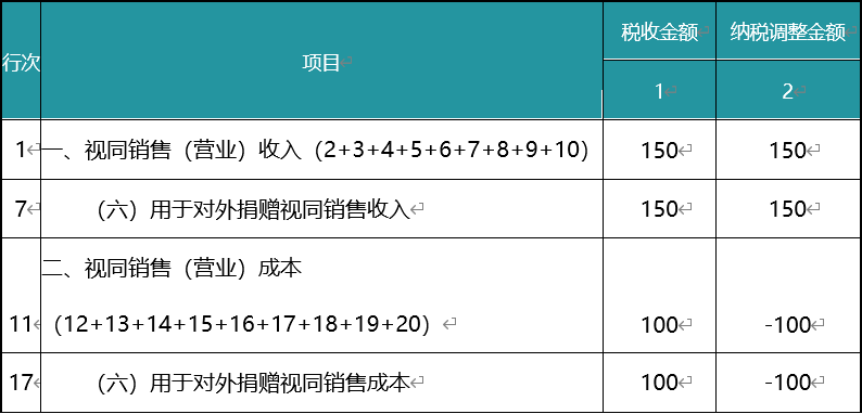 此案例,视同销售收入调增150万元,视同销售成本调减100万元,过A105000“其他”项目调减50万元,最终企业所得税调整的结果为0。