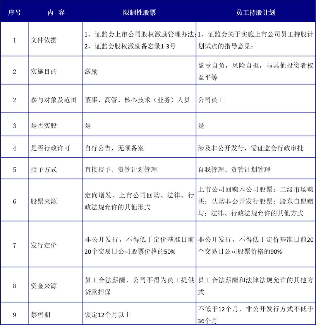 员工持股计划和限制性股票在实施依据、实施主体、价格限定、实施方式上都存在很大的差异。目前,我们对于员工持股计划的个人所得税缴纳一直就没有明确的规定。但是,员工持股计划又都在大量实施,不可能没文件规定就不缴纳个人所得税。因此,为了我们后面探讨在财政部、税务总局没规定的情况下,员工持股计划目前应该如何缴纳个人所得税风险比较低,我们先来比较一下员工持股计划和限制性股票的异同: