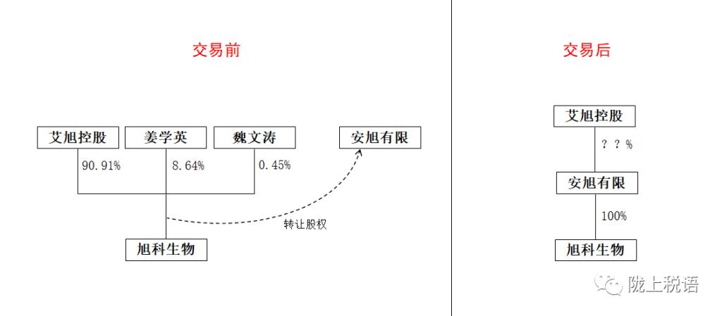 2018年12月12日,旭科生物召开股东会,决议同意艾旭控股、姜学英、魏文涛分别将各自持有的300.00万元股权、28.50万元股权和1.50万元股权转让给安旭有限。同日,艾旭控股、姜学英、魏文涛分别与安旭有限签订股权转让协议,约定将各自持有的300.00万元股权、28.50万元股权和1.50万元股权分别作价1,354.55万元、128.68万元和6.77万元转让给安旭有限,上述股权作价依据为《杭州安旭科技有限公司拟股权收购涉及的杭州旭科生物技术有限公司股东全部权益价值资产评估报告》(万隆评报字(2018)第10347号)。本次股权转让中,艾旭控股适用特殊性税务处理规定,姜学英、魏文涛相关个税已缴纳完毕。