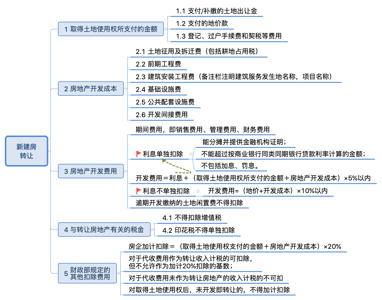 (1)财务费用中的利息支出,凡能够按转让房地产项目计算分摊,并提供金融机构证明的,允许据实扣除,但最高不能超过按商业银行同类同期贷款利率计算的金额。其他房地产开发费用按取得土地使用权所支付的金额及房地产开发成本之和的5 %以内予计算扣除以扣除。