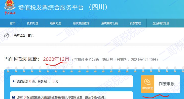 事情是这样的,前几天二哥发了一篇文章,说是如果你当月申报完成,发现了还需要勾选几张发票,这个时候你可以作废申报表,然后把勾选期退回去继续勾选。
