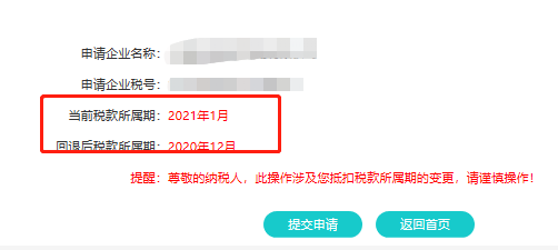 3、我们点击按钮,系统提示你要回退到上个所属期,也就是12月份