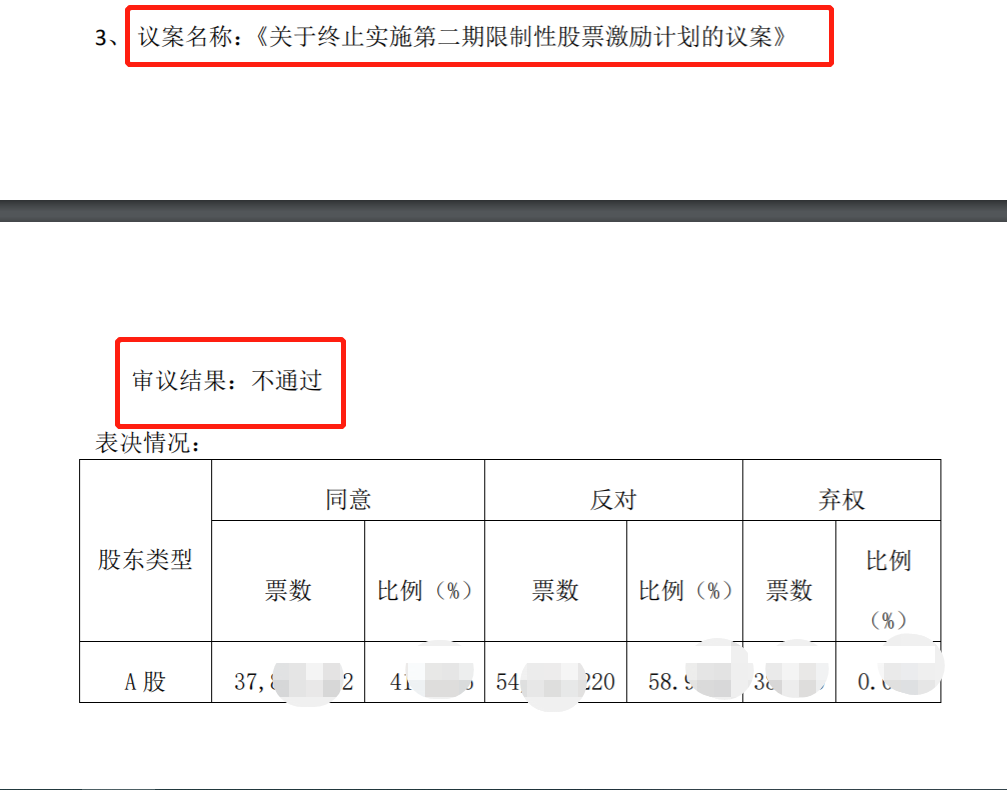 近日,某上市公司召开股东大会,董事会提请股东大会审议的《关于终止实施第X期限制性股票激励计划的议案》 ,审议结果为“不通过”。