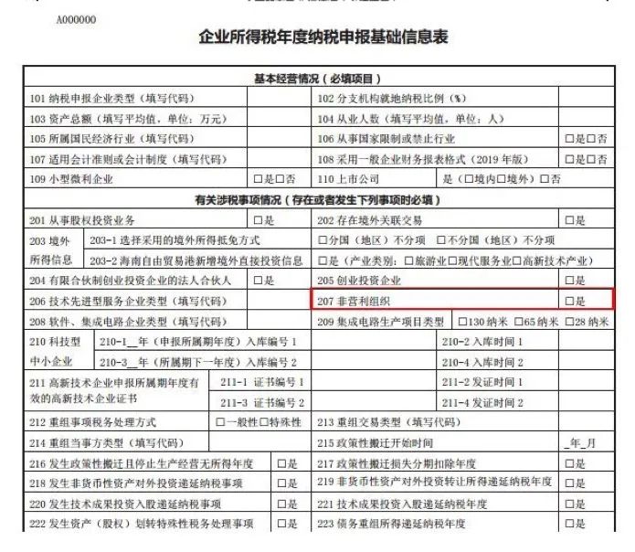 首先,A基金会应在A000000《企业所得税年度纳税申报基础信息表》“207 非营利组织”选择“是”。