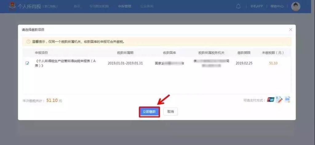 3.选择直接付款或者登录付款,发起扣款请求完成缴税。