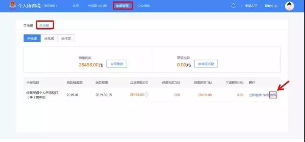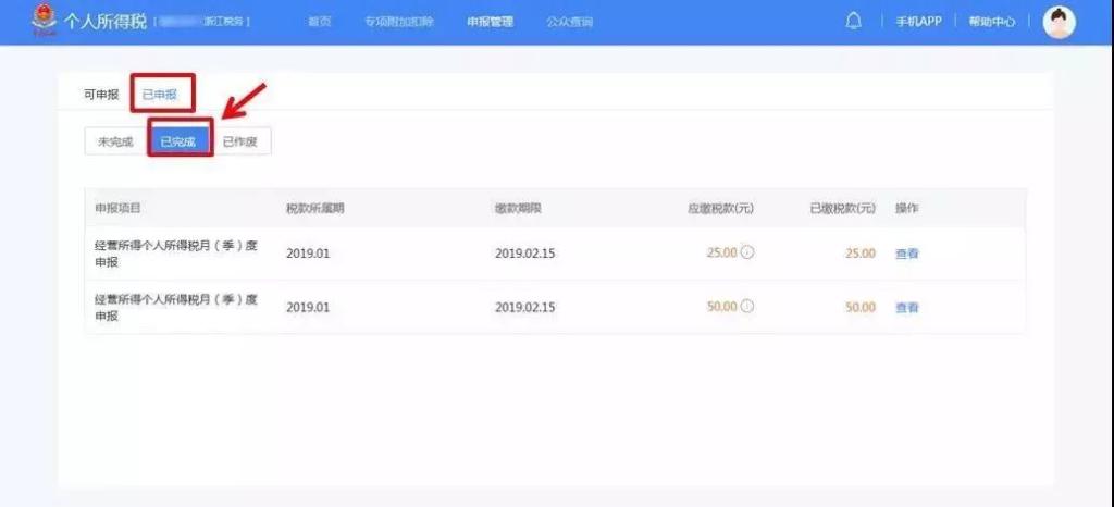 点击【申报管理】-【已申报】-【已完成】,即可查看已缴税情况。