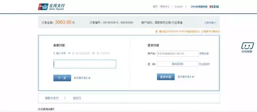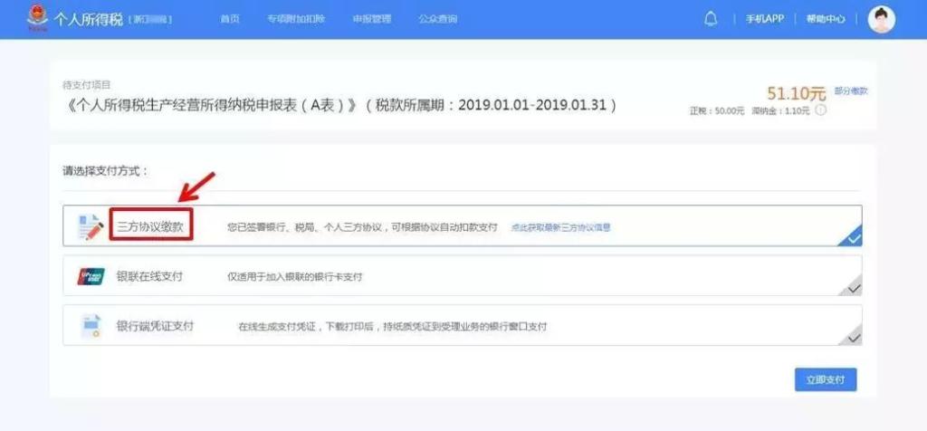 未签订三方协议缴款的纳税人,可选择银联在线支付完成缴款。
