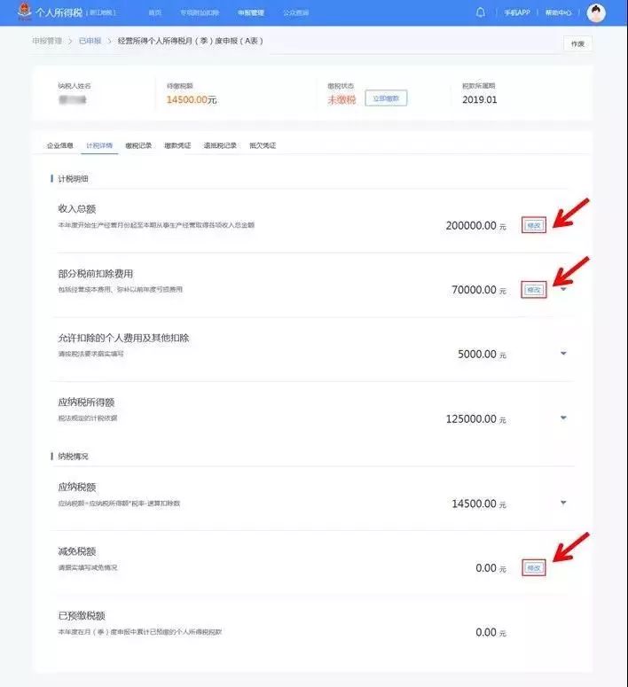 如企业类型为合伙企业,则计算公式和明细自动带出合伙企业合伙人分配比例,可在申报成功的页面立即缴款或查看申报记录。