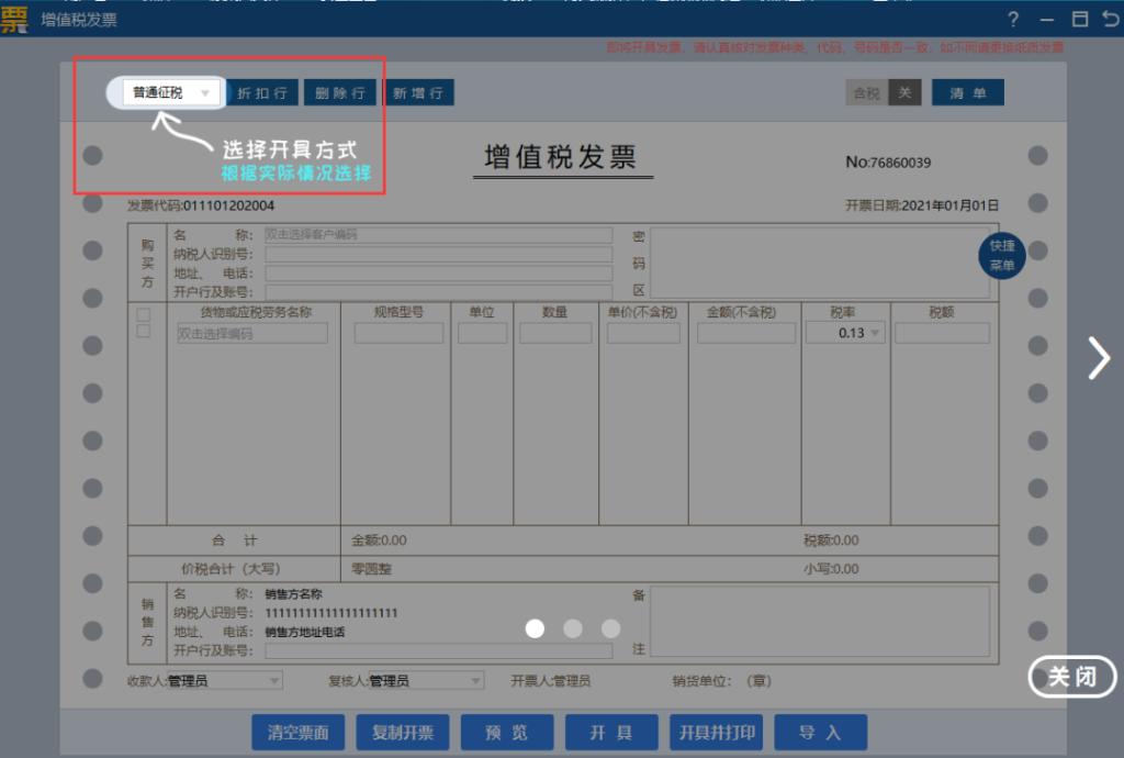注意:一般纳税人选择简易征收时不能选择1%征收率开具。
