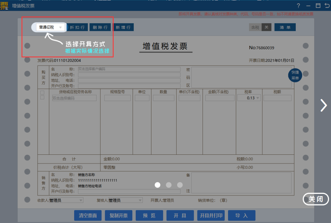 第一步:点击【发票填开】-【增值税专用发票】-进入发票填开界面,选择【普通征税】