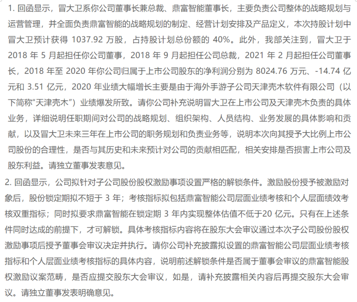 股权行权价格为0需要判断其定价的合理性,正常的商业行为是需要等价交换,上市公司回购本公司股份支付了真金白银,以0对价过户给被激励对象,被激励对象在锁定期是否给上市公司带来超额贡献?其贡献是否与行权当日股票交易价格相当?深交所也是基于此于7月13日继续回函追问上市公司主要激励对象与任职期间、负责业务、公司业绩之间的关系(如下图),避免持股计划和股权激励成为公司高管团队无偿获取上市公司股份的工具,进而损害其他股东利益。