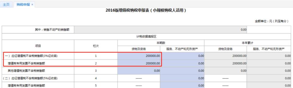 由于在申报表中没有对应的1%行次,所以还是填写在3%的行次里:在申报表第1行和第2行填写20万;但这是按照3%计算税款的,而实际开具的是1%的发票,涉及到2个点的减免,需要填写减免税申报表和主表16行应纳税额减征额。