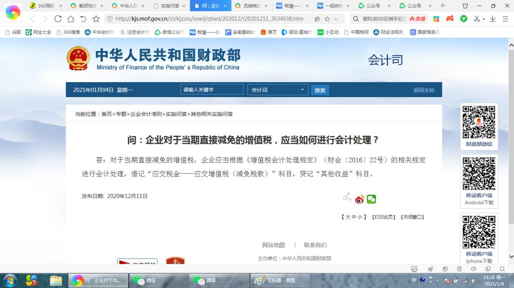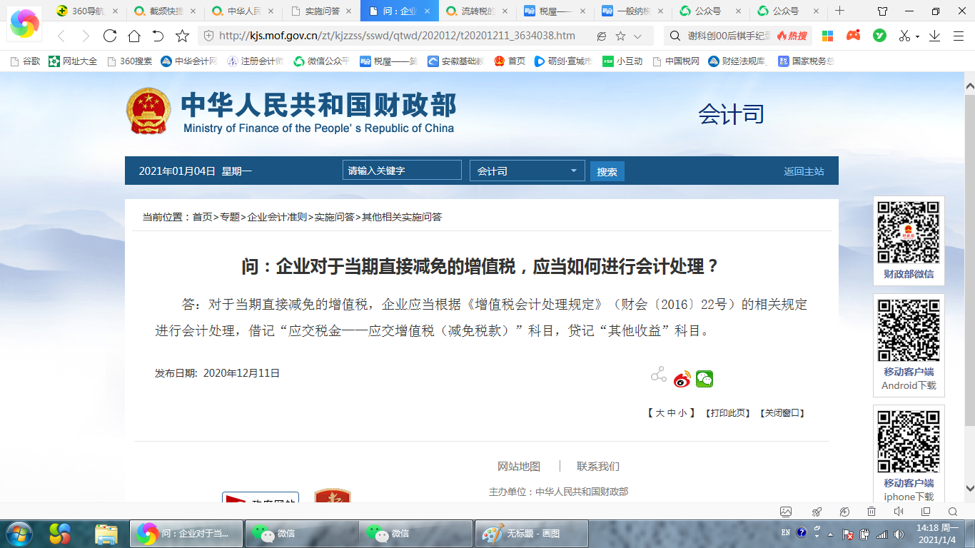 问:企业对于当期直接减免的增值税,应当如何进行会计处理?