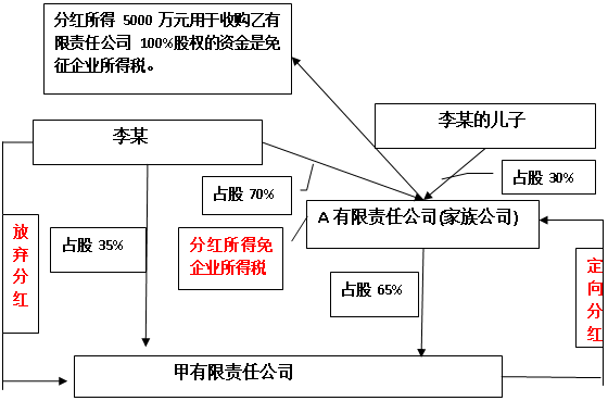 1、作为自然人股东李某放弃甲有限责任公司的分红所得,将向有限责任公司A(家族公司)定向分红。