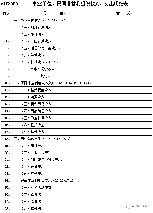 从上述规定来看,在民政部门领取“民办非企业单位”证书的民办非营利学校,属于企业所得税纳税人,得接受企业所得税法的约束,姑且先不管能否免税,你首先都得按企业所得税法的规定进行纳税申报。事实上,全国统一的企业所得税纳税申报表体系中,已经专门单列了一类“事业单位、民间非营利组织收入、支出明细表”: