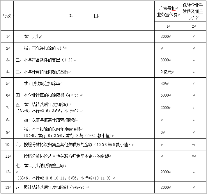 A105060 广告费和业务宣传费等跨年度纳税调整明细表