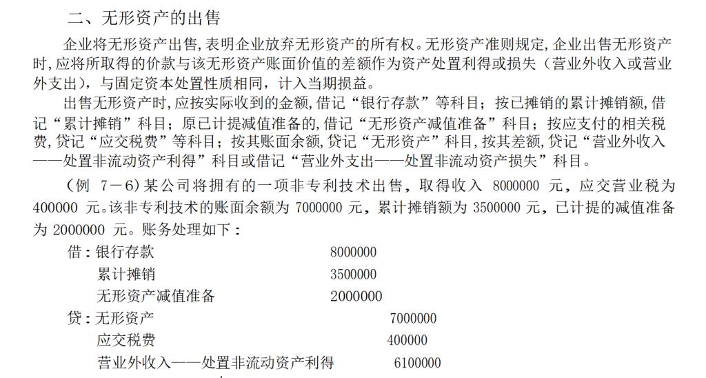 为此,我查阅《企业会计准则讲解2010年》(财政部会计司编写组)有关“无形资产”出售的账务处理,确实在无形资产出售时是不再补做“累计摊销”,而是一次性结转无形资产摊余成本。