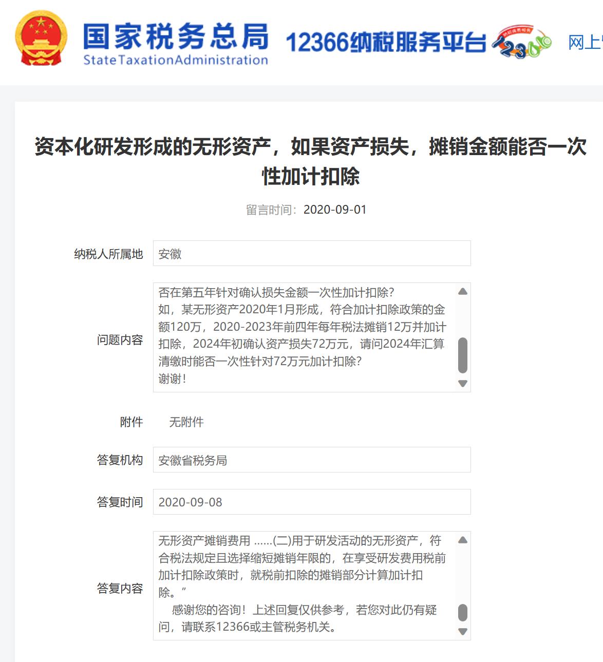 国家税务总局安徽省税务局12366纳税服务中心答复: