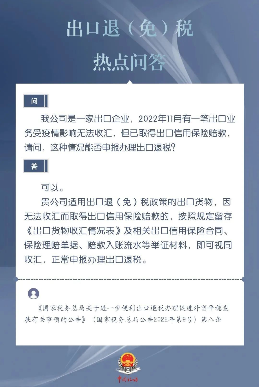 为进一步加力支持包括中小微企业在内的广大经营主体开展外贸出口业务,便于企业掌握出口退税现行规定、及时了解出口退税便利化举措,商务部、国家税务总局针对企业普遍关心的出口退税热点问题,整理了问答集锦。一起来看看吧↓