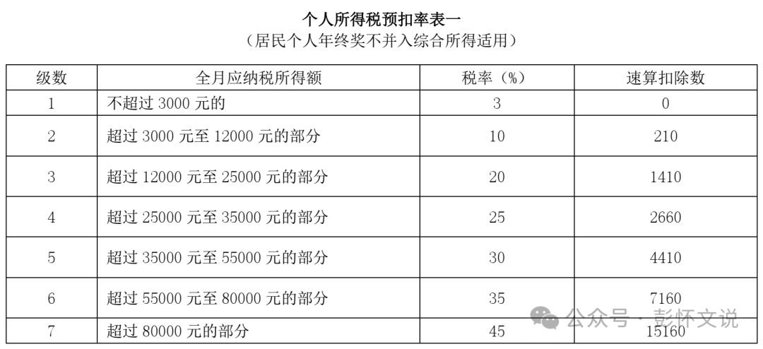 (4)适用税率表与工资薪金所得税率表一致