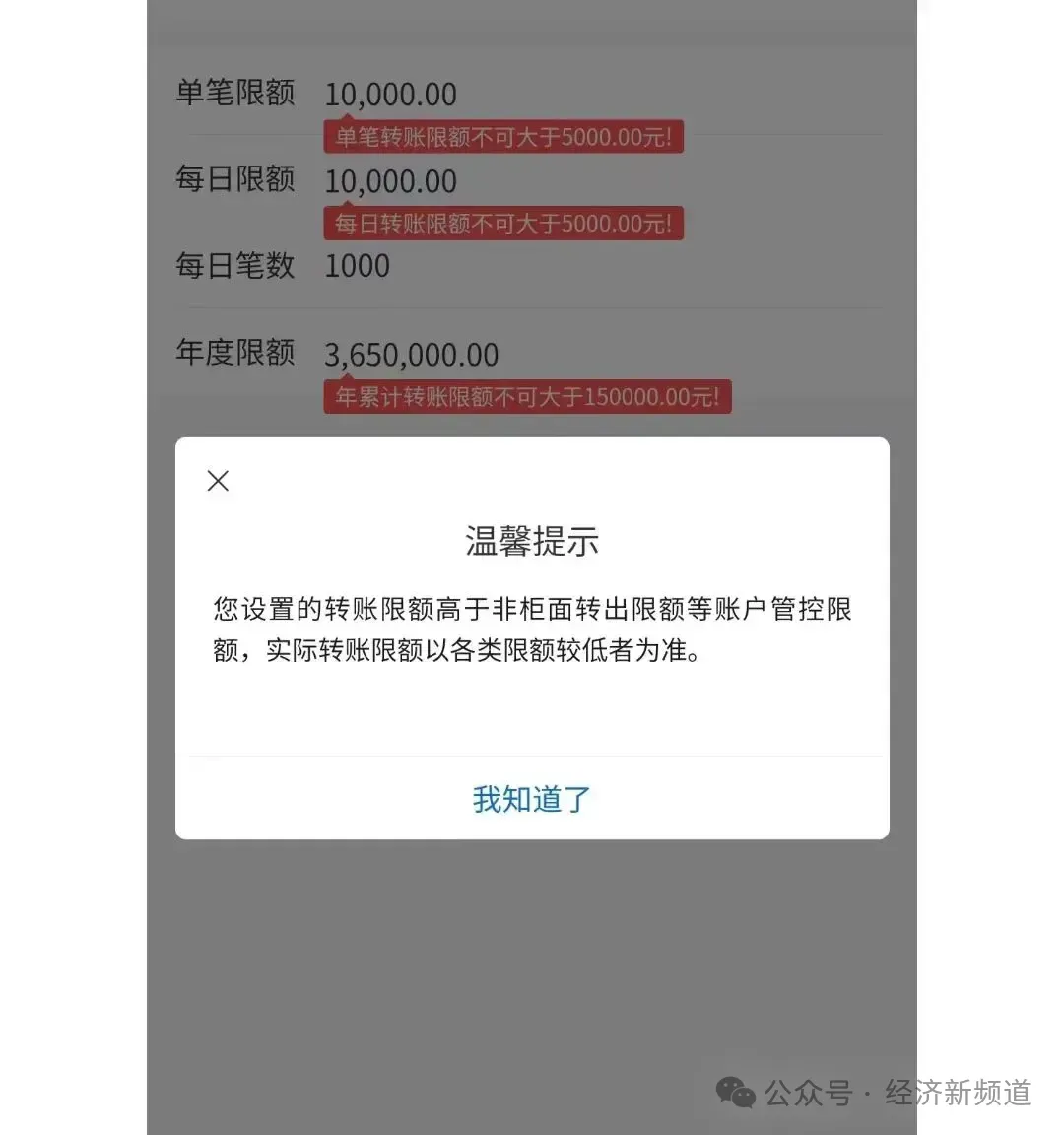 “转账的时候提示我,500块都转不出去,让我怎么生活呢?”近日,一网友在社交媒体上晒出银行卡转账被限额的截图,并配文称银行卡被限额,立刻引起不少网友的共鸣,纷纷“吐槽”起自己被“降额”的经历。